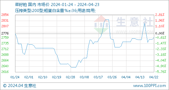 4月23日生意社菜籽粕基准价为2761.67元/吨