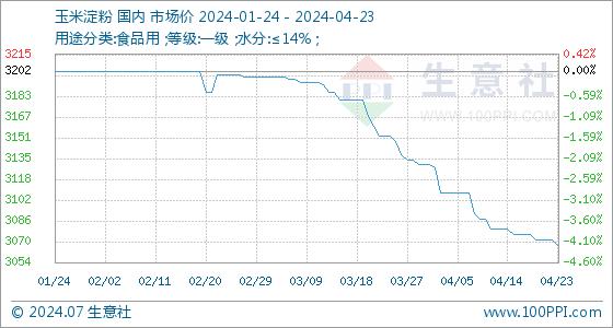 4月23日生意社玉米淀粉基准价为3072.00元/吨