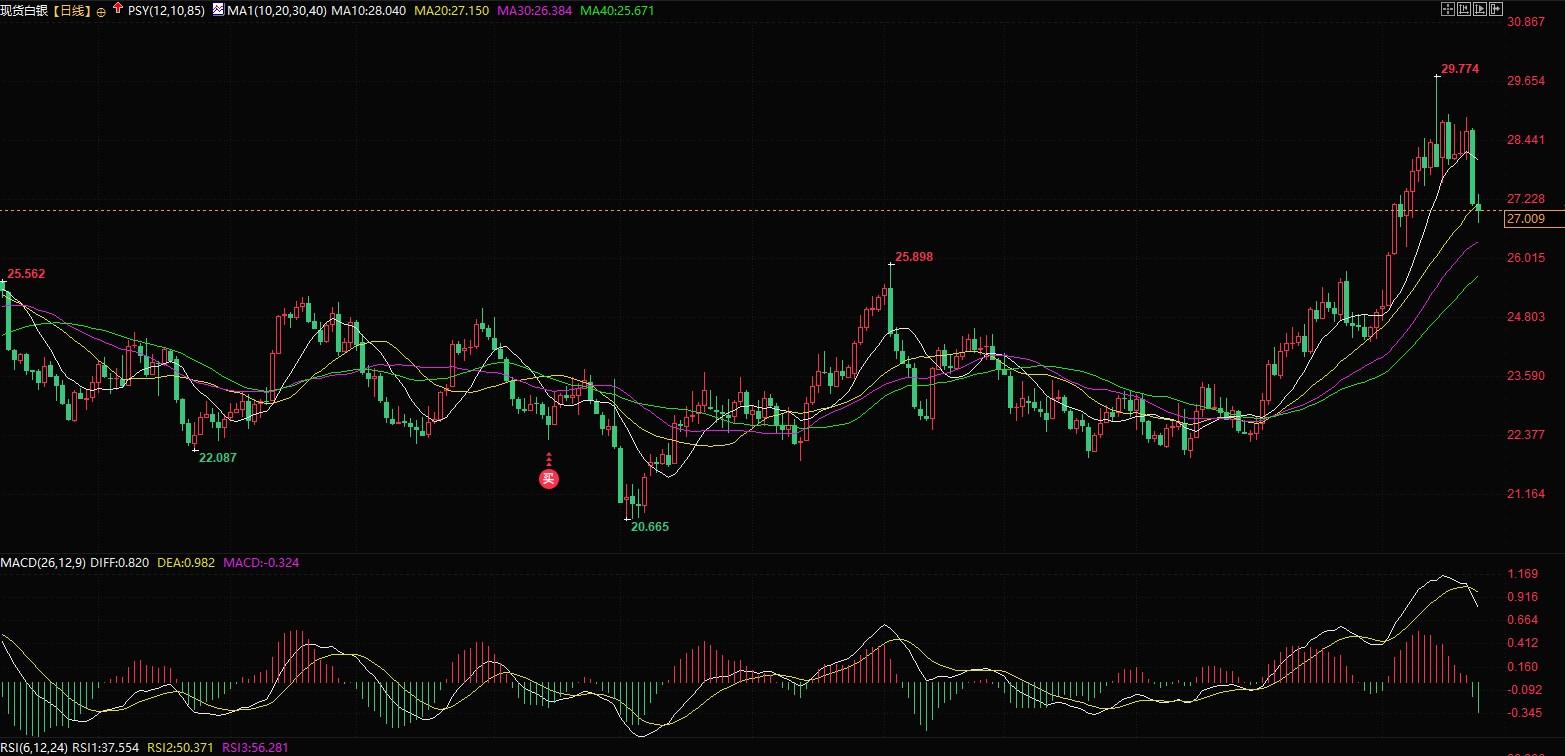 白银高位回落扔面临危险,或进一步跌至26美元