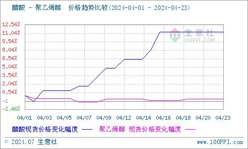 本周醋酸乙烯市场价格震荡下跌。当前醋酸乙烯原料醋酸价格持续上涨,醋酸价格持续上涨,截止4月22日,生意社醋酸基准价为3450.00元/吨,与本月初(3100.00元/吨)相比,上涨了11.29%,最近10天上涨6.15%,15天上涨10.40%,20天上涨11.29%,30天上涨15.00%。周内国内醋酸乙烯市场价格主稳运行,价格区间保持在6343元/吨左右。