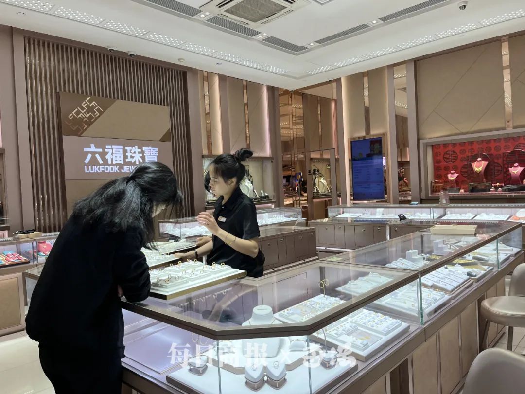 “上周最高时738元/克,昨天跌了几元,今天大跌。”六福珠宝工作人员告诉记者,“快要五一了,我们现在有活动,部分商品每克可减50元。”