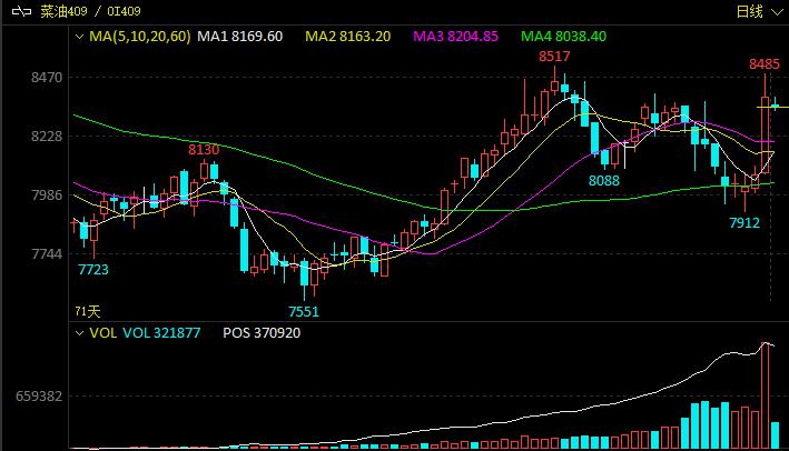 “今年一季度国内外棕榈油价格表现强势,提振了油脂油料板块的市场情绪。相较于棕榈油和豆油的强势,菜油显得有些黯淡,主要原因是库存居于高位,且预计供大于求的局面长期维持。”中信建投期货研究发展部高级油脂分析师石丽红告诉记者,尽管如此,但突发性天气因素的出现还是令菜油的表现惊人。