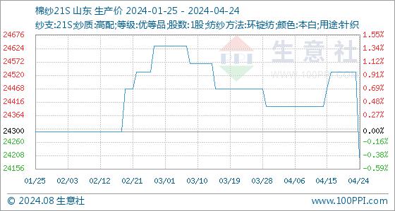 4月24日生意社棉纱21S基准价为24533.33元/吨