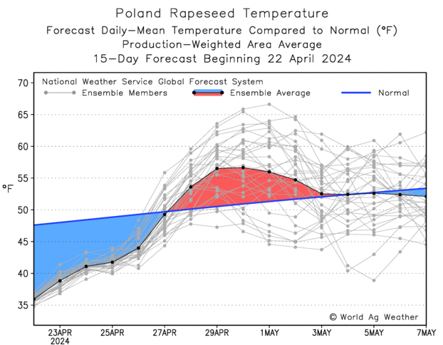 二、欧盟菜籽处于开花期,低温可能影响波兰、德国部分地区菜籽产量