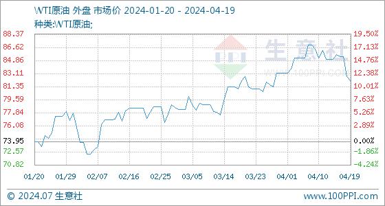 4月19日生意社WTI原油基准价为82.69美元/桶