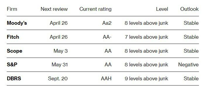 法国兴业银行利率策略主管Adam Kurpiel表示,“我相信,即便穆迪本周五不下调评级,前景也将调整为负面”。