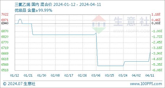4月11日生意社三氯乙烯基准价为6600.00元/吨