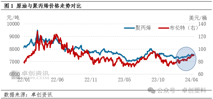 原油与PP走势趋同 但PP涨幅不及油价