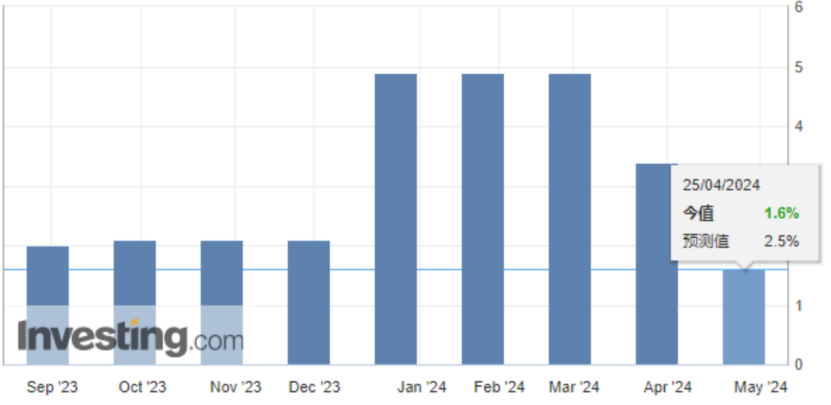 其次是,美国第一季度核心PCE物价指数季调后环比折年率初值为3.7%,预估为3.4%,前值为2.0%,为一年来首次环比加速。数据发布后,利率互换市场认为,美联储今年要到12月才会启动降息,而不是11月。