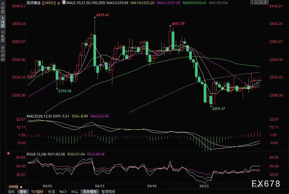 汇通财经APP讯——金价周五(4月26日)窄幅震荡,目前交投于2333.08美元/盎司附近,本周迄今,金价下跌2.4%,或将录得六周来首次周线下跌,投资者的注意力转向了关键的美国通胀数据,以寻找美联储利率轨迹的线索。