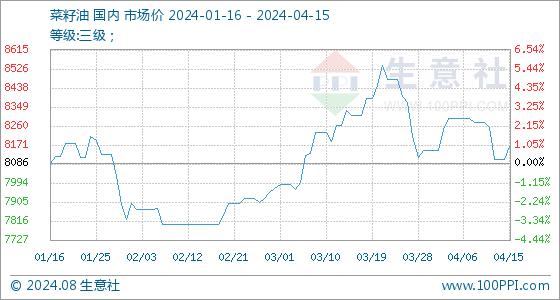 4月15日生意社菜籽油基准价为8103.33元/吨