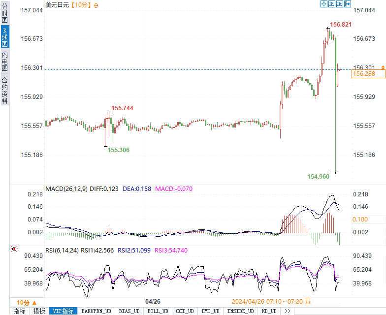 日元兑美元汇率周五大幅上涨,交易员高度警惕日本货币当局是否将采取干预措施支撑日元。美元从156.8日元大幅下跌至155日元。目前尚不清楚导致这一走势的原因。日元在过去四周内稳步走低,创下34年来新低。