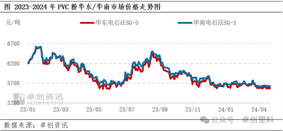 本周PVC粉市场区间小幅波动,仍处于震荡状态,据卓创资讯数据显示4月19日-4月24日华东SG-5运行区间在5510-5630元/吨,周均价较上周变化不大,价格波动区间略低于上周预测的运行区间(5540-5680元/吨)。