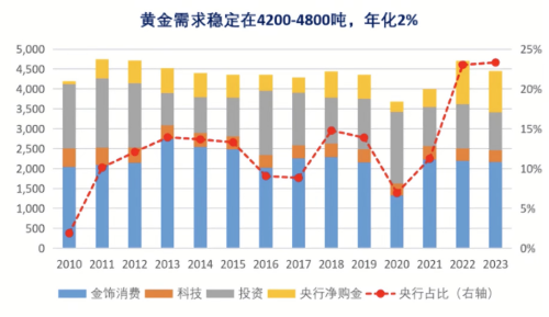 黄金需求结构变化亮点:央行净购金比重明显提升