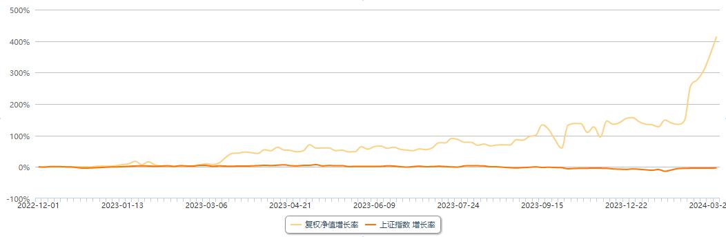 此外,中财期货其所发行的一款资管产品“中财又一莲二号”近年来净值表现优异。数据显示,“中财又一莲二号”于2022年12月成立,发行人和管理人均为中财期货。截至今年4月3日,此产品成立以来复权净值增长率超过400%,而同期上证指数下跌了3%。据媒体报道,“中财又一莲二号”投资策略为主观CTA。