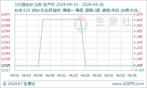 临近劳动节假期,下游少数纱厂有放假计划,纱厂开工或小幅下滑,而部分下游工厂也有补货需求。目前行业新增订单量普遍较小,部分纱厂表示,库存较高难以消化,若近期订单状况无明显好转,或将考虑五一假期停机。总的来说,当前纱厂库存累积,打击市场信心,对采购涤纶短纤积极性一般。价格以持稳运行,其中山东地区32S纯涤纱市场参考价格在12325元/吨。