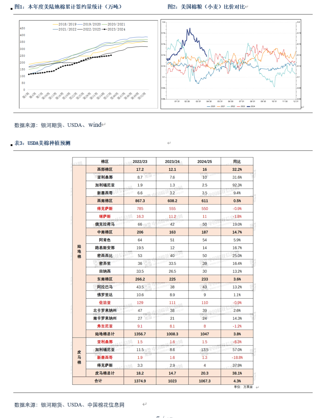 1、新年度美棉种植意向增加,预计美棉总产量将高于本年度产量水平。
