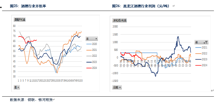 酒精行业,4月开机率维持高位,酒精行业利润持续下滑。截止4月24日,黑龙江利润为-280元/吨,河南酒精利润为-81元/吨。