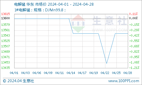 据生意社商品行情分析系统:2024年4月1#电解锰市场先跌后涨,整体下行。华东地区现货市场价格月初在13600元/吨,月末在13550元/吨,跌0.37%。
