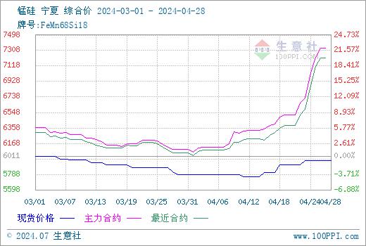 4月份的硅锰市场终于迎来了好消息。成本端冶金焦目前第三轮提涨,化工焦也有三轮共230元/吨的涨幅,锰矿由于受到热带气旋“梅根”的影响,South32表示预计在25财年第三季度(25年一季度)重新开始澳洲码头运营和出口销售,随后锰矿表现尤为强势,价格快速上涨,合金成本支撑较足,现货价格随之上涨。据生意社商品行情分析系统,硅锰宁夏地区(规格为FeMN68Si18)4月28日市场报价在5900-6000元/吨附近,市场均价5955元/吨,较月初涨2.88%。