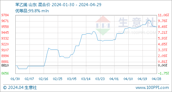 4月29日生意社苯乙烯基准价为9560.00元/吨