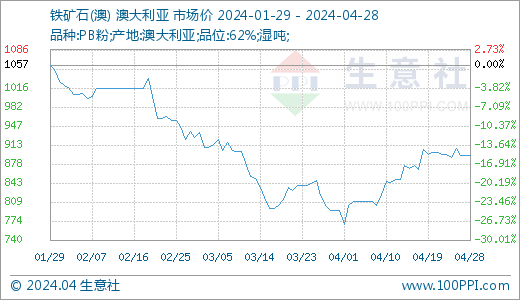 04月28日铁矿石893.33元/吨20天上涨11.39%