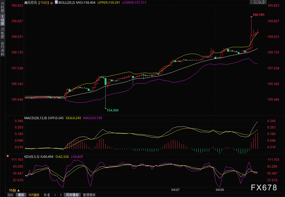 需要提醒的是,160关口是市场多数分析师预计的日本政府干预底线,而且1990年美元兑日元的高点也在160.20,短线预计进一步上破的可能性不大,这也是汇价触及该位置后快速回落近100点的原因所在。短线需要提防日本政府干预的可能性和日元空头获利了结的可能性。