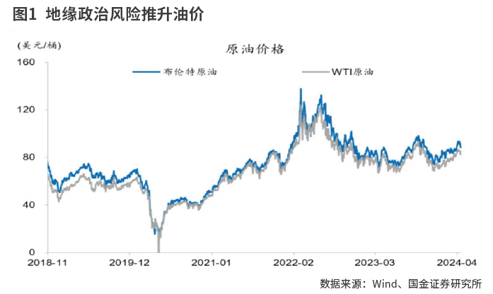 4月,伊朗以色列冲突显著升级,地缘政治风险攀升,导致WTI原油价格脉冲至87美元/桶,布油价格短暂升至90美元/桶上方,致使再通胀担忧升温。