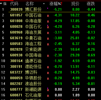 下跌方面,油气股陷入调整,中国石油、中国石化跌超4%。