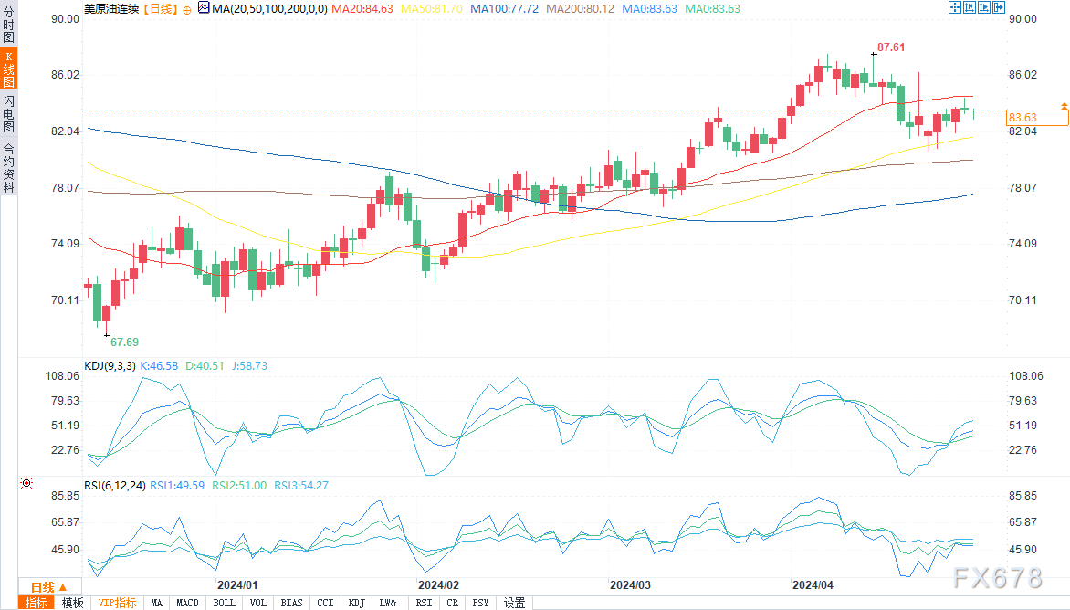 WTI原油技术分析:国际油价回落,关注83.20美元得失