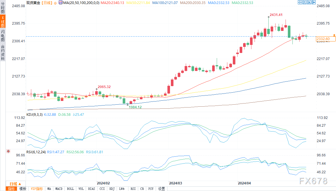 汇通财经APP讯——周一(4月29日),受美元走软推动,现货黄金价格涨跌互现,交投于2330美元附近。交易商等待本周美国联邦储备理事会会议的关键数据和即将公布的美国经济数据。