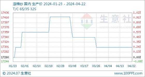 4月22日生意社涤棉纱基准价为17300.00元/吨