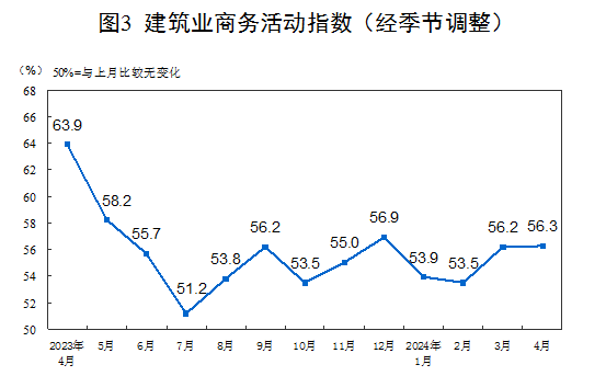 业务活动预期指数为57.2%,比上月下降1.2个百分点,继续位于较高景气区间,表明非制造业企业对近期市场发展持续看好。分行业看,建筑业业务活动预期指数为56.1%,比上月下降3.1个百分点;服务业业务活动预期指数为57.4%,比上月下降0.8个百分点。