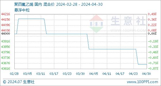 4月30日生意社聚四氟乙烯基准价为43666.67元/吨