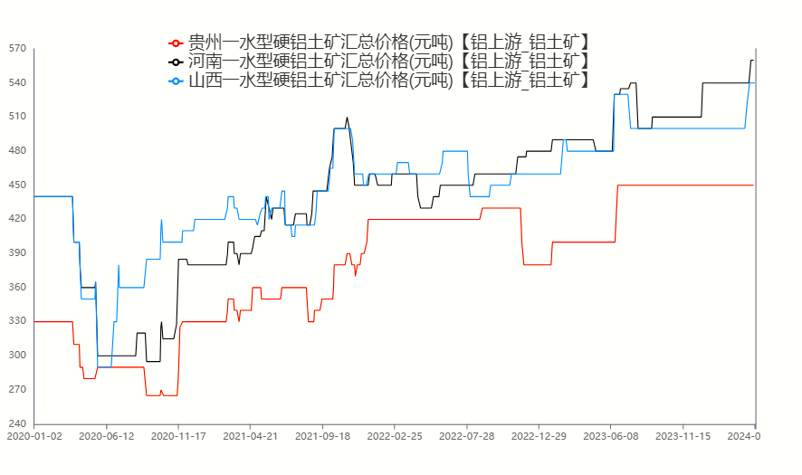 图11:中国铝土矿价格 图12:国内外氧化铝价格