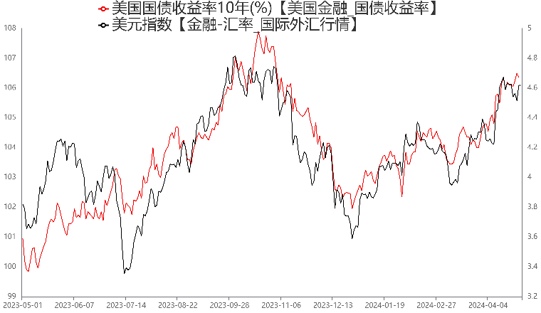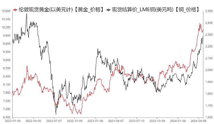一般而言美债收益率上升,美元和黄金同时走强的背景为:美国经济相对于非美经济体更加有韧性,这样美元和美债收益率在基本面的支撑下偏强。与此同时风险点主要集中在非美经济体,这又让黄金在避险需求之下同时上涨。诸如俄乌冲突后美国对俄美元储备的制裁让各国央行开始增持黄金储备。中国2022年至今黄金储备规模增长了31.4%。就算全球地缘政治冲突以及局部去美元化对黄金的长期支撑,但是黄金最终仍然要回归到与美元及美国实际利率负相关的框架之内,在美联储真正开启降息前,黄金存在一定的透支。而调整的驱动就是美联储转鹰后对黄金的压制,从而带动铜铝的金融属性回归正常水平。