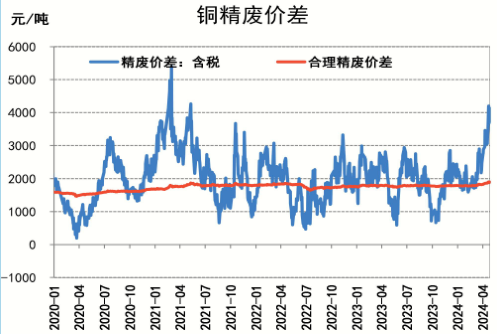 基本面方面短期也有调整的需求:首先,精废价差已经到了的4000元/吨上方,废铜的替代效应急速增强,但是下游消费仍然不足。其次,TC加工费无限接近于0,向下空间已没有空间,国内炼厂调整产能迫在眉睫。