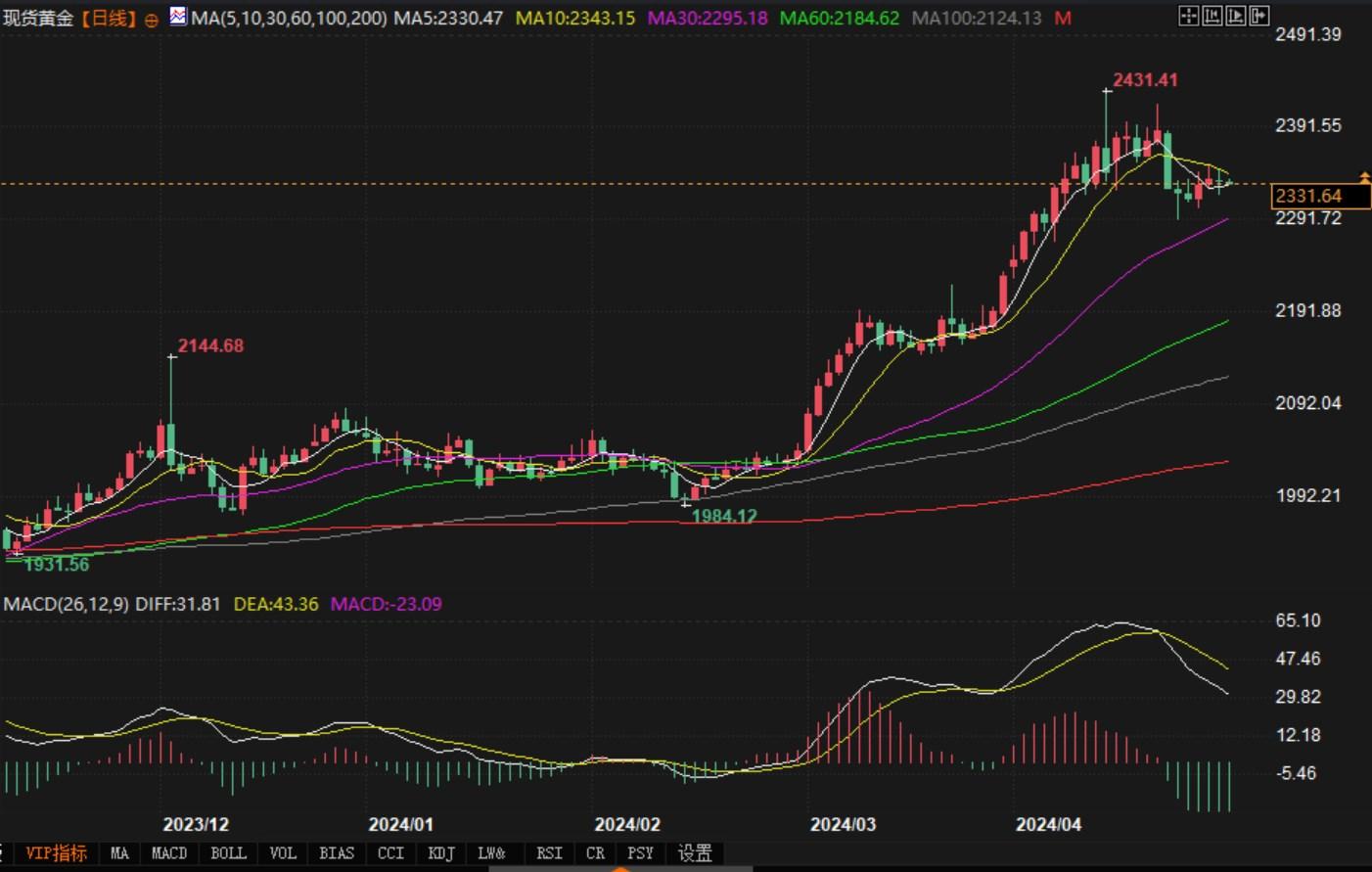 北京时间4月30日10:14,现货黄金报2329.73美元/盎司