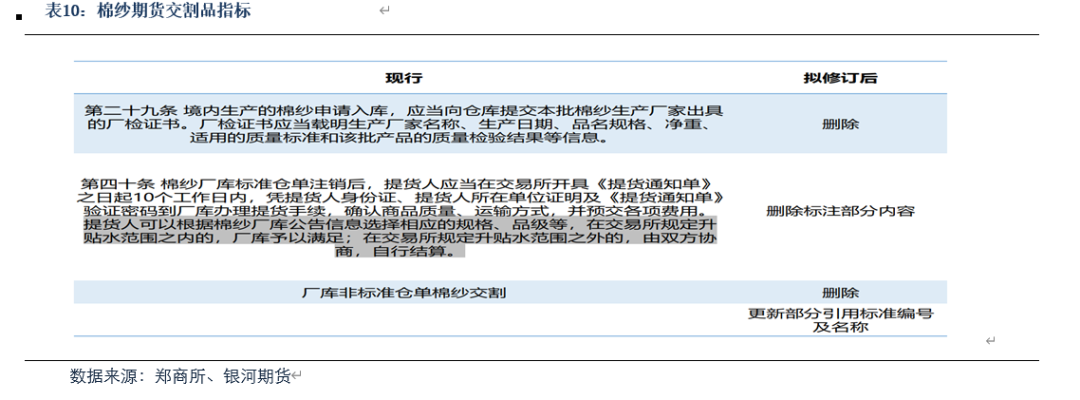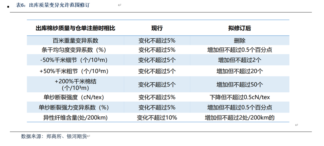 仓库质量变异允许范围来看,因为仓库仓单越来越多,之前由于纱线期货规则不够细化,很多要求不是很具体,因此在本次修订后更加的优化了其合理性,更好的贴近了实体企业运用。