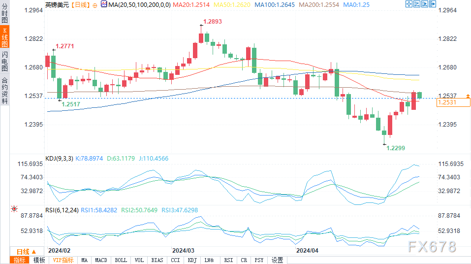 英镑/美元周一反弹,测试了200日移动均线切入位1.2550,目前交投于1.2535附近。如果这一看涨突破得以持续,近期内买家可能会有勇气攻击趋势线阻力位1.2590。进一步的上行压力可能会将焦点放在1.2635上,随后是1.2720,这与2023年7月至10月回调的61.8%斐波那契回撤位一致。
