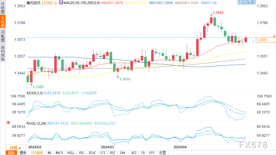 美元/加元周二从大约两周的近期走势中有所反弹近期跌势,目前接近1.3690附近。如果行情转弱,初步支撑位置在1.3610,如果跌破该水平,可能会导致该货币对向趋势线支撑位1.3580-1.35下跌。