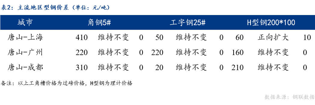 从区域价差来看,唐山H型钢价格与上海H型钢价格正向扩大。
