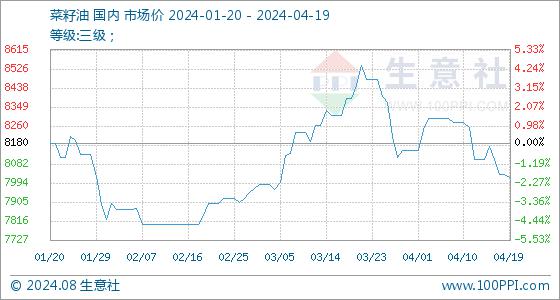4月19日生意社菜籽油基准价为8031.67元/吨