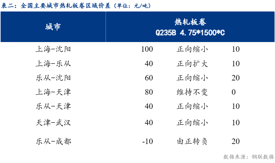 从区域价差来看,华东与东北价差100元/吨,较上一交易日正向缩小10元/吨;华东与华南价差40元/吨,较上一交易日正向扩大10元/吨;华南与华北价差40元/吨,较上一交易日正向缩小10元/吨