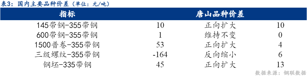 355mm带钢与钢坯市场价格价差正向扩大13元/吨,螺带差反向缩小6元/吨。