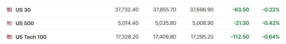 1.5月1日(周三)美股盘前,美股三大股指期货齐跌。截至发稿,道指期货跌0.22%,标普500指数期货跌0.42%,纳指期货跌0.64%。