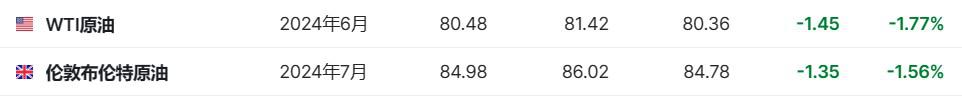 3.截至发稿,WTI原油跌1.77%,报80.48美元/桶。布伦特原油跌1.56%,报84.98美元/桶。