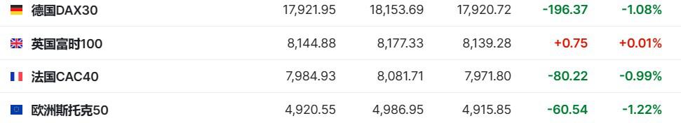 2.截至发稿,英国富时100指数微涨0.01%。欧洲多国股市五一休市。