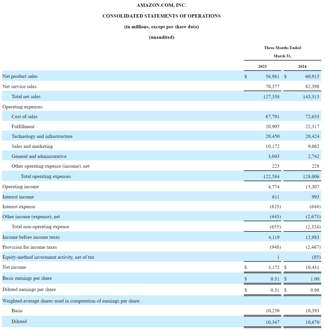 净利润方面,亚马逊第一季度净利润为104亿美元,而2022年第四季度净利润为32亿美元。