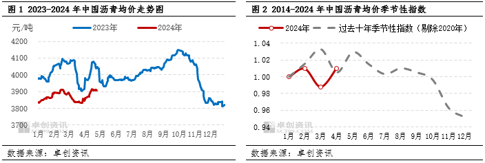 4月份沥青市场均价为3890.68元/吨,环比上涨41.11元/吨或1.07%,从季节性指数来看,4月份沥青价格环比表现偏强。